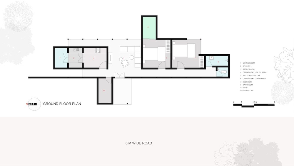 Keeping the privacy of the bedroom intact this house opens into a courtyard where as the other one has a corner bedroom, which gives privacy as well as participation with nature. House is made such that it spreads inside the living space of the house while we could only see an entry of this house from a blank facade the entrance side. This house is planned such the living space divides all the private spaces like bedroom, washroom etc. where the house could be used in various manner with a different usability. This house shows an existence of duality together.