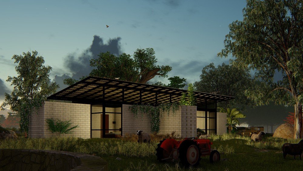 To increase the porosity the identity of house more as a transparent one from the farm side. These transparencies get illuminated during the night time, where the house appears to be a lantern at night. Hence we termed it as lantern