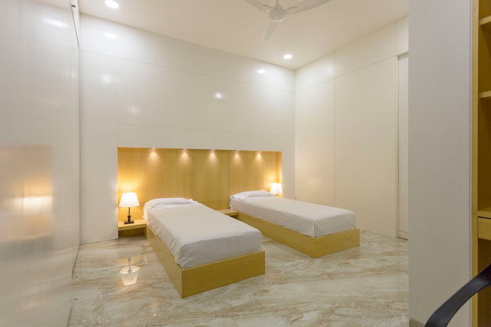 Second part of this typology is a residence placed on top of the hospital. Residence is connected by a subdued staircase to emphasize the experience at threshold with a massive doorway that opens into a palatial volume of the living space.