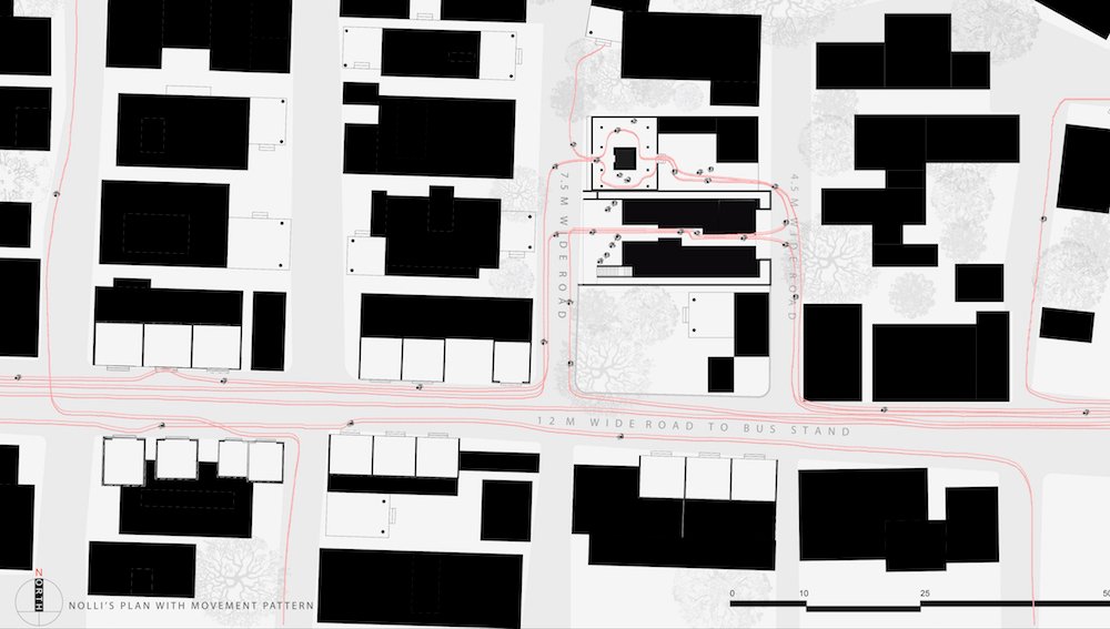 Rigorous studies of the site and the surrounding contexts, prompted to the idea of preserving memory of pre-existing elements. Elements like, an old tube well (built in basalt) and temple on the north, adjacent to the site, played a vital role in the entire evolution and synthesis of the design. Conscious efforts are taken to keep all the markers of the site intact.