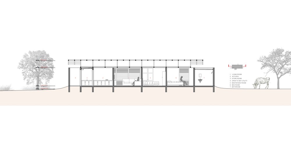 To increase the porosity the identity of house more as a transparent one from the farm side. These transparencies get illuminated during the night time, where the house appears to be a lantern at night. Hence we termed it as lantern