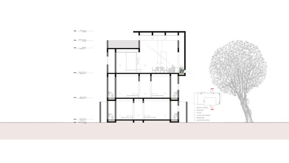 Every element of the structure is designed to hold the attention of all visitors during the transition through spaces. While making of experiences in dwellings, the conception of spaces are influenced by Indian traditional buildings. This building seeks to live in the legacy of traditions, cherishing memory of the site. These memories are marked by the presence of tube-well predominantly, which in a way governs a grammar of design. Tube-well being the emeritus, witnessed every event of evolution on site, signifies the name of the house being ‘Tube-well House’.